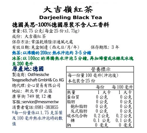 德國美思茶 大吉嶺紅茶(25x1.75g)柔順香醇的大吉嶺紅茶 評價